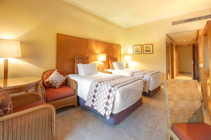 2 Twin Classic Pool Access Smoking is 54 square feet and includes 2 single beds 80-130 width plus extra beds on demand, hairdryer, tea and coffee making facilities , safe, and bathrobes.
